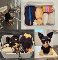 I love to crochet. My commissioned work ranges from recreating pets to making huggable pop culture icons and custom pickleball playing pickles. For a quote on a custom crochet project click the “Get A Quote!” button below.